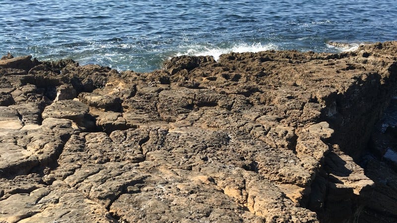 So it was the long way that I took, moving down the face of slippery rock stopping only to admire where the powerful waves cut holes in its face.