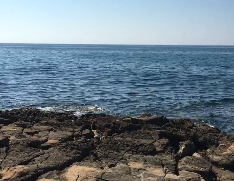 I sit here on this rock surrounded by this water and these waves I sit here and and I breathe I breathe with the water and I breathe with the rock I breathe.