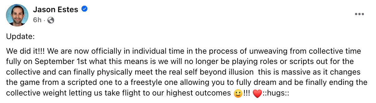 The update from Jason (above) was very interesting from this respect. He says, ‘We will no longer be playing roles or scripts out for the collective…. we change the game from a scripted one to a freestyle one, allowing you to fully dream and be finally ending the collective weight…’