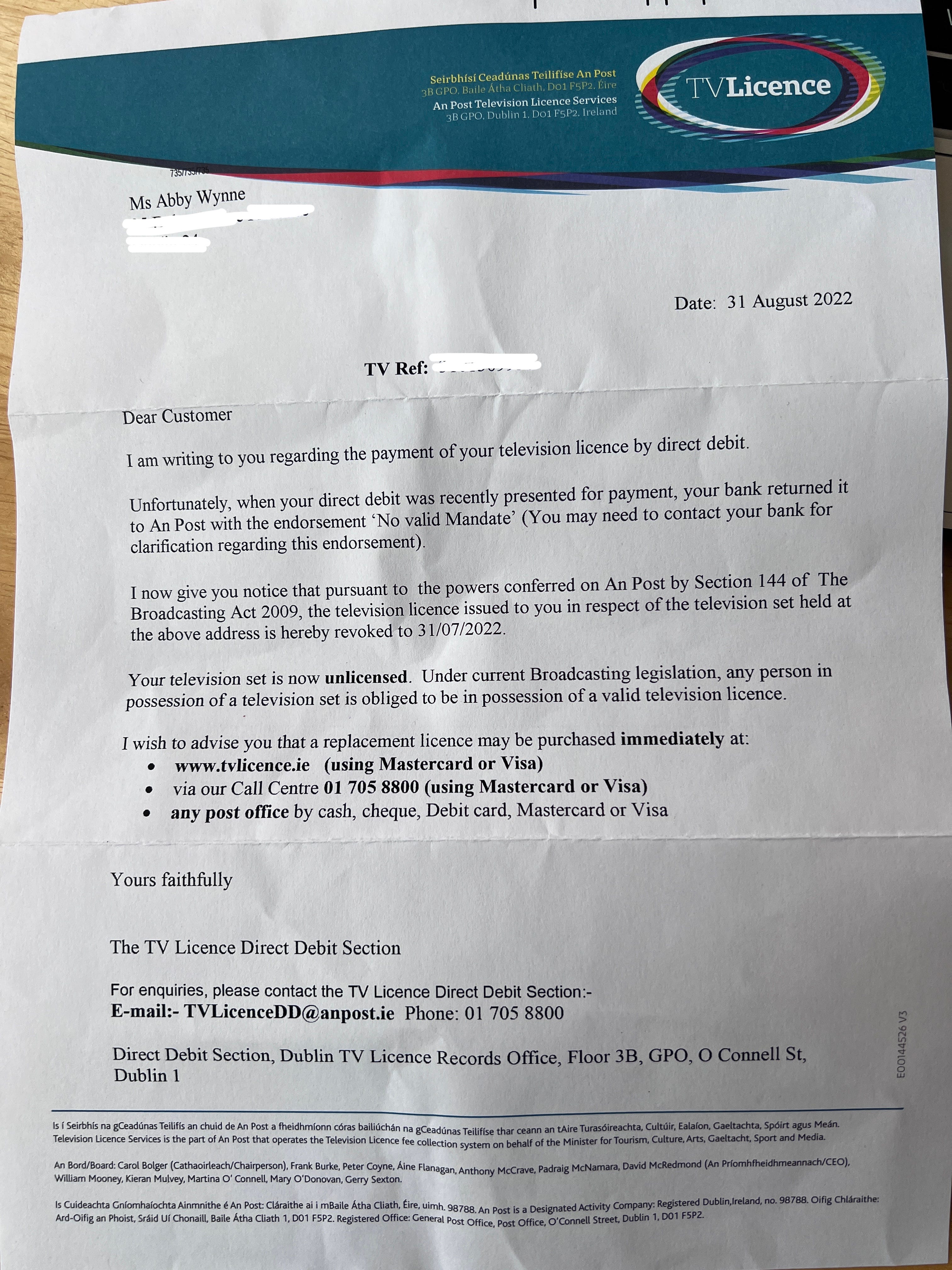 So, An Post, you tell me exactly why I should support RTÉ and pay this licence fee when they have drastically let me down? And not just me, they have let down my family and all of the people of Ireland.