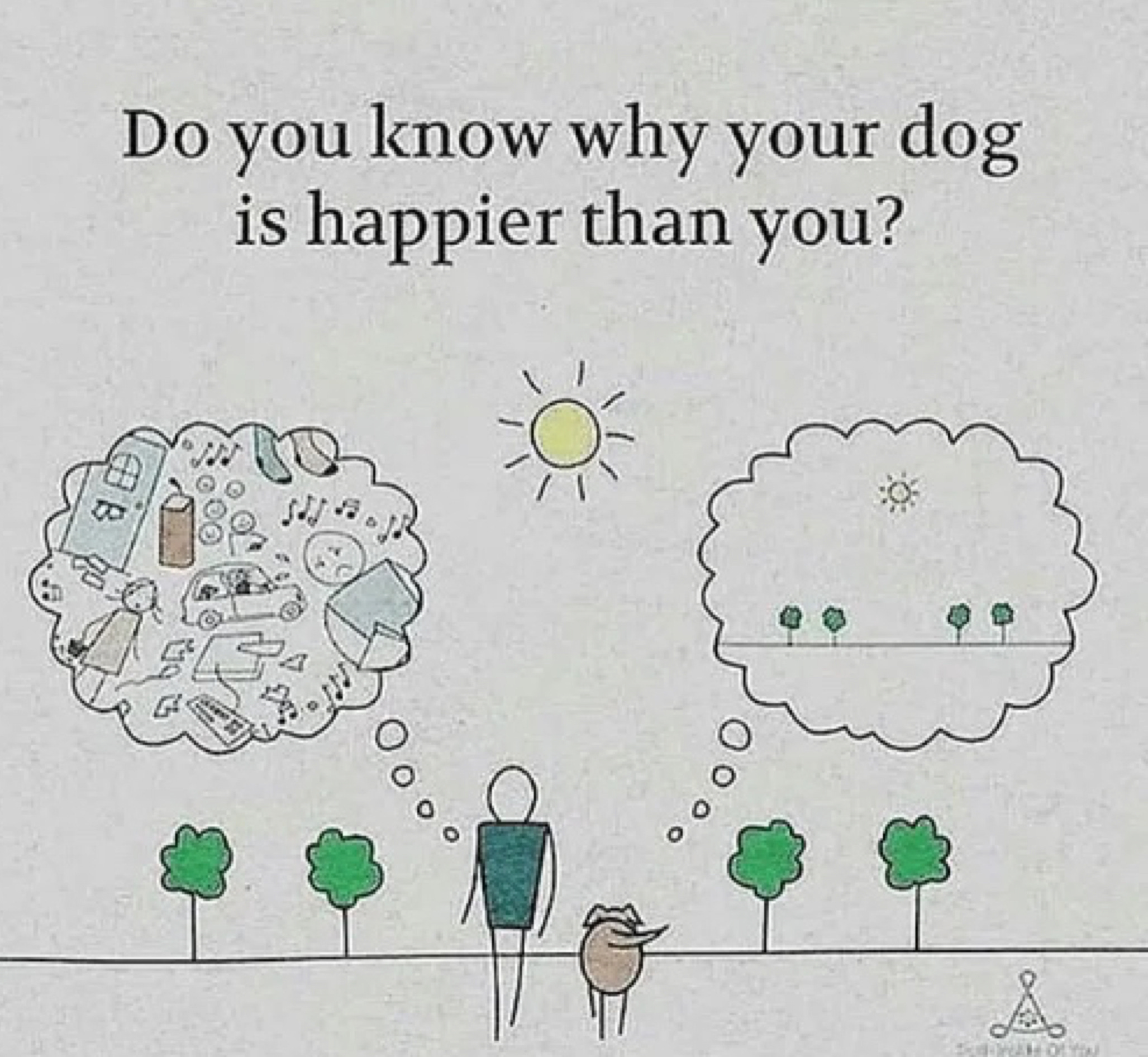 That’s what will happen to many of us this year if we are not mindful. Perhaps we really do need to be more like dogs. We just have too much our our minds.